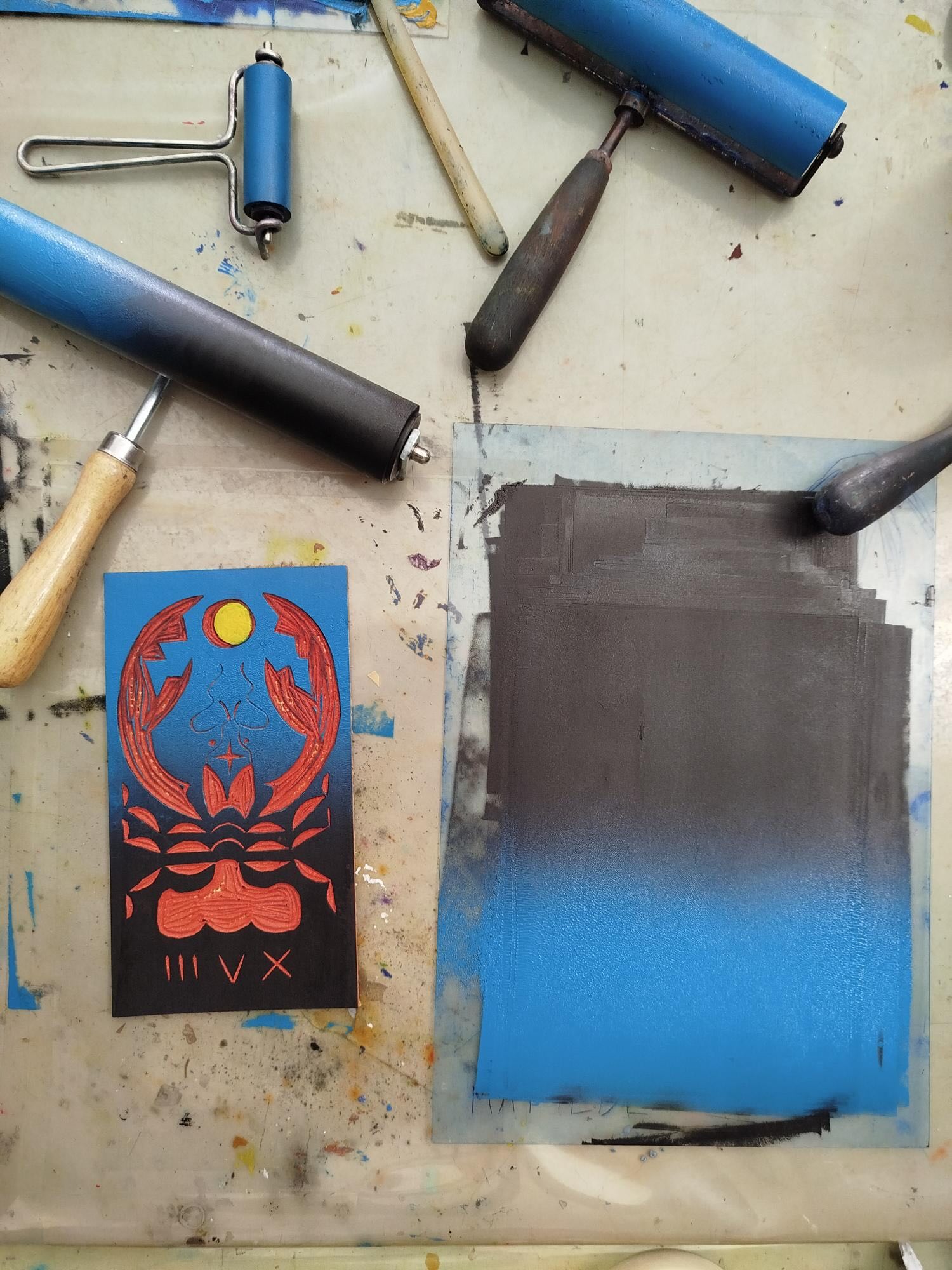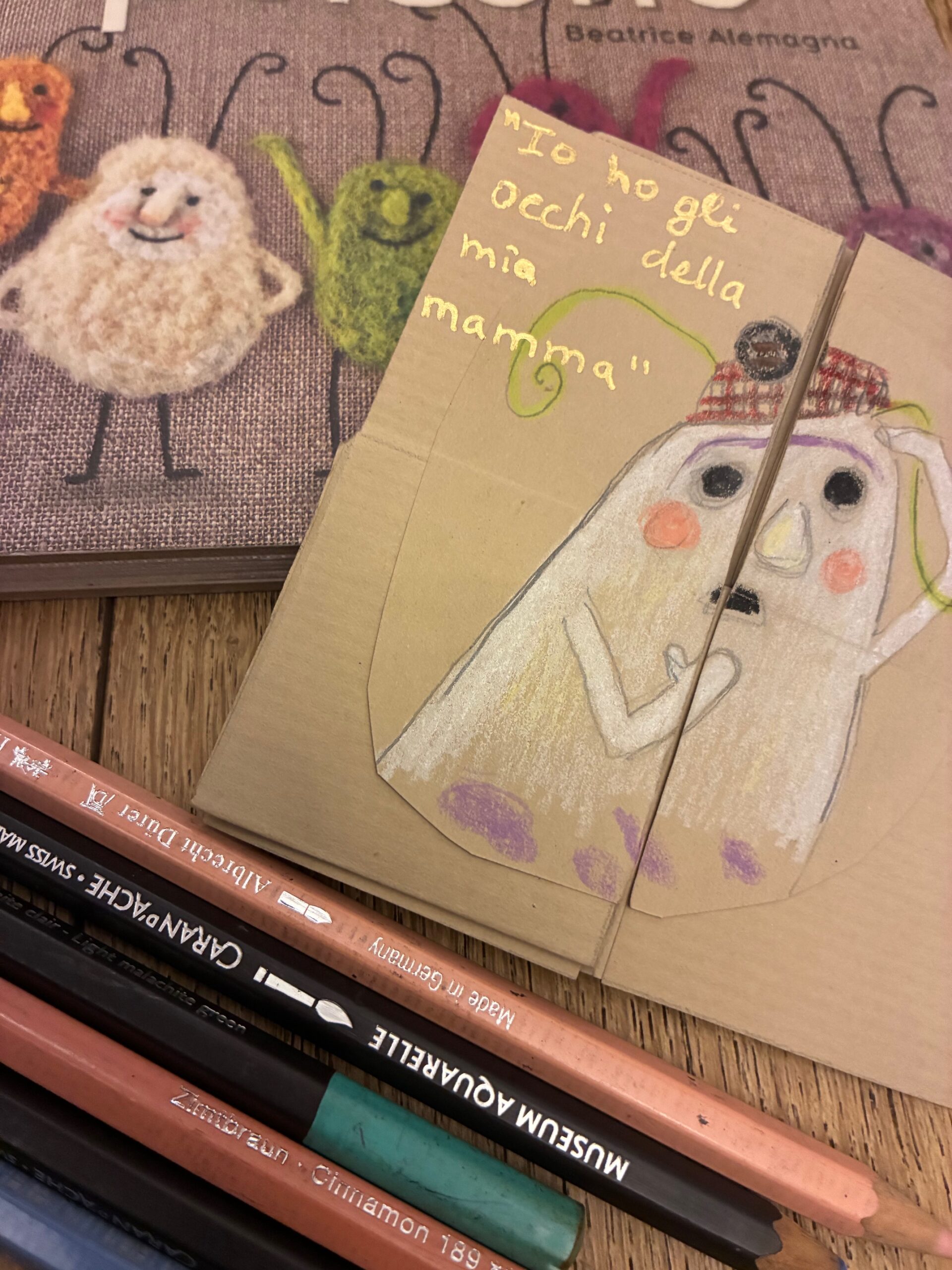 Intorno tanti materiali raccolti nella natura e recuperati, carta, argilla, ci aiutano a sviluppare i progetti.