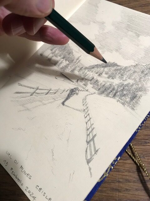 La nostra città anima un diario con i suoi volumi antichi e moderni, la natura che resiste al cemento, l’acqua che magicamente riaffiora dalle falde profonde, le sculture che mediano tra l’uomo e l’architettura. Impariamo a disegnare En plein air come gli impressionisti e come loro condividiamo l’esigenza di riunirci .